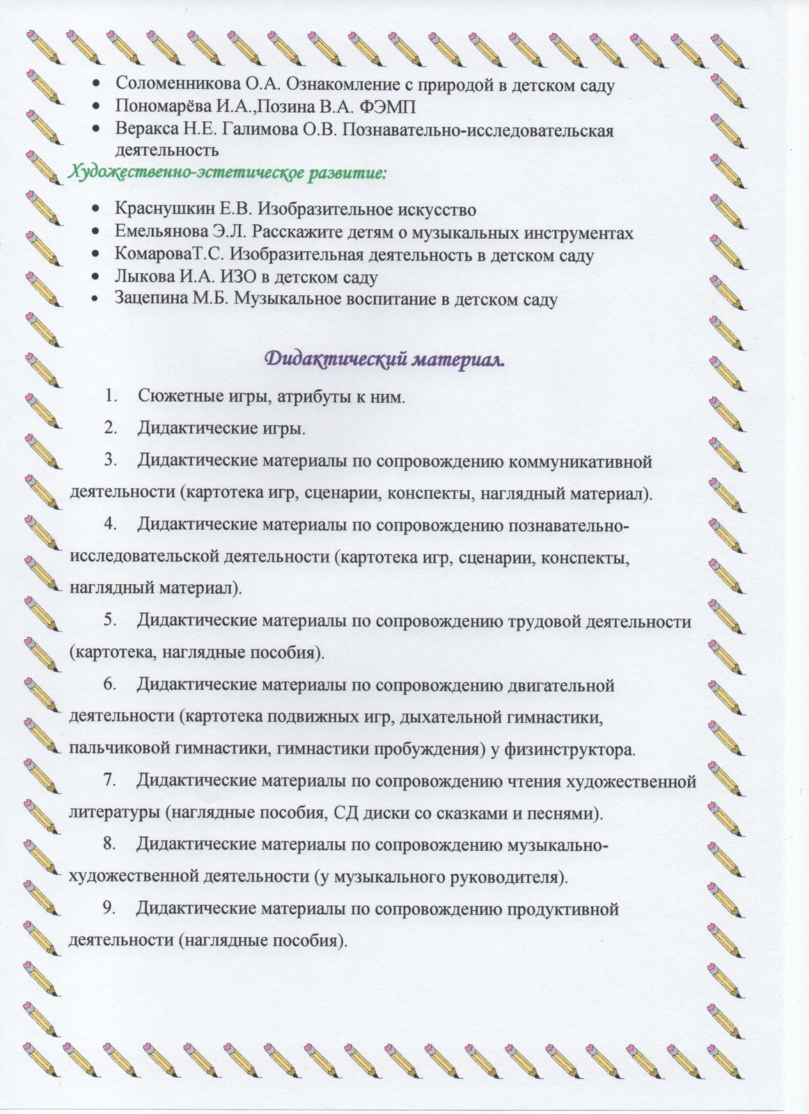 обеспечение подбора игрушек, игр, пособий для работы с детьми по программе с учетом современных требований;