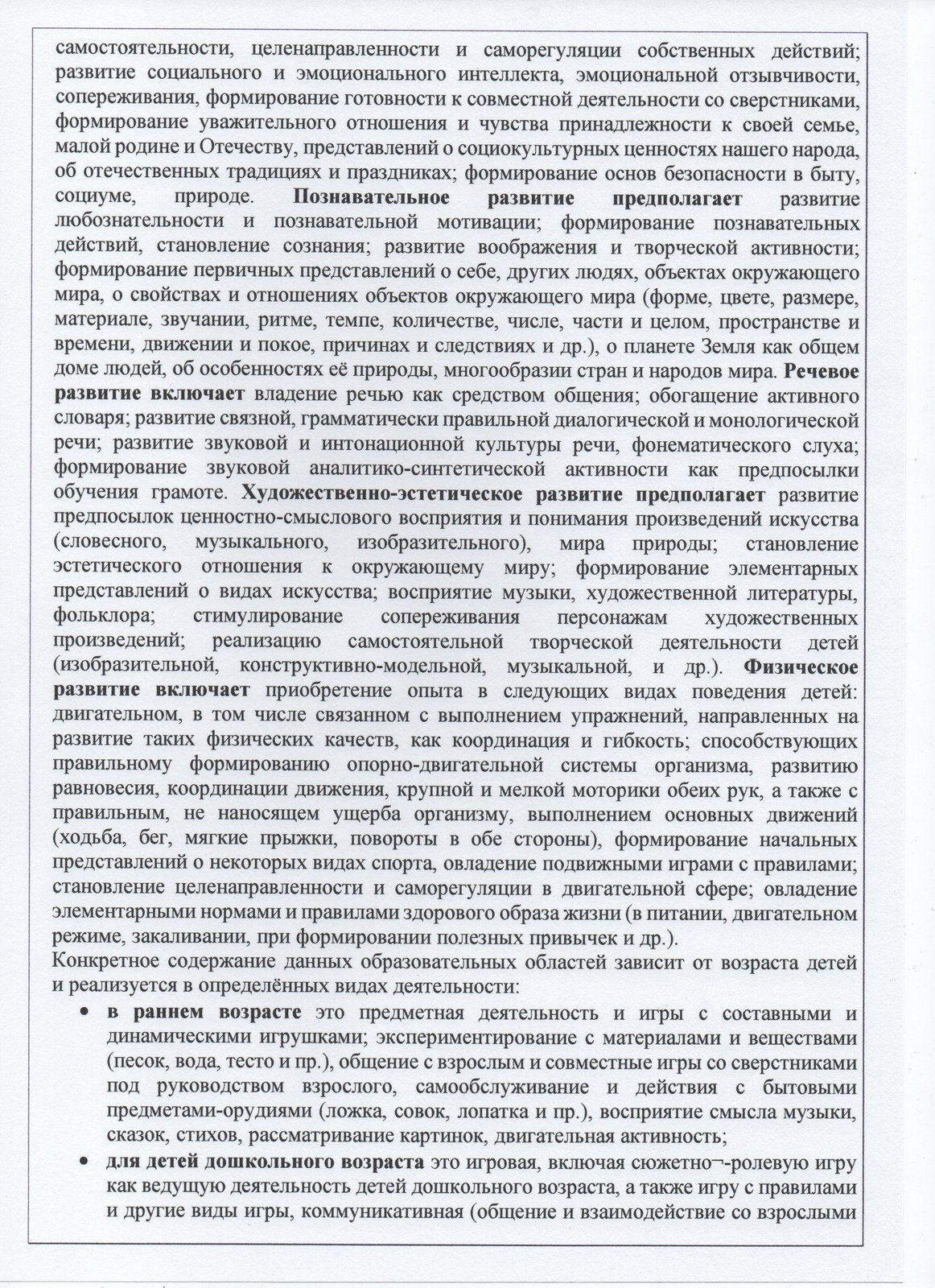 Конкретное содержание данных образовательных областей зависит от возраста детей и реализуется в определённых видах деятельности: