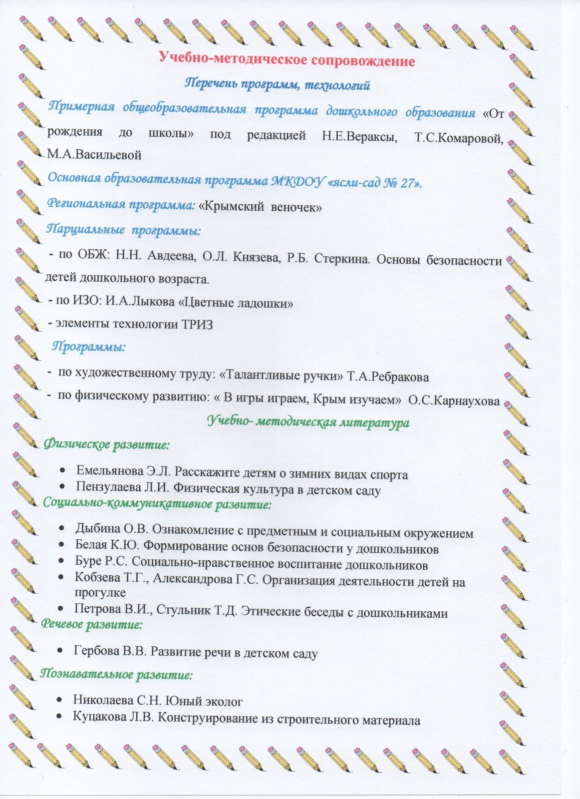 Своевременное информирование педагогов о новых разработках в психолого-педагогической науке и передовой практике, методическом обеспечении в системе дошкольного образования является важным условием высокой результативности воспитательно-образовательного процесса.